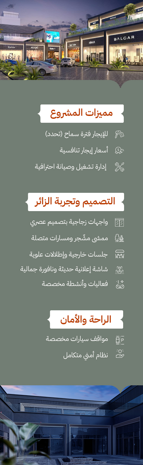 احجز مساحتك الآن في بوليفارد سما أفنيو الذي يقع على شارع الإمام البخاري في شمال مدينة بريدة، واجعل من مشروعك علامة مميزة في أهم وجهات بريدة.
